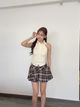 [PRE] J5033 Gianna Ruffle Checked Camisole Top
